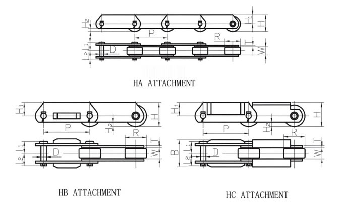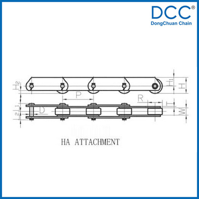 Chain No.Roller typePitch P (mm)Inner width of inner link W (mm)Diameter of roller R (max) (mm)Height of chain H (mm)Data of sidebarData of pinTensile strength Q (KN)